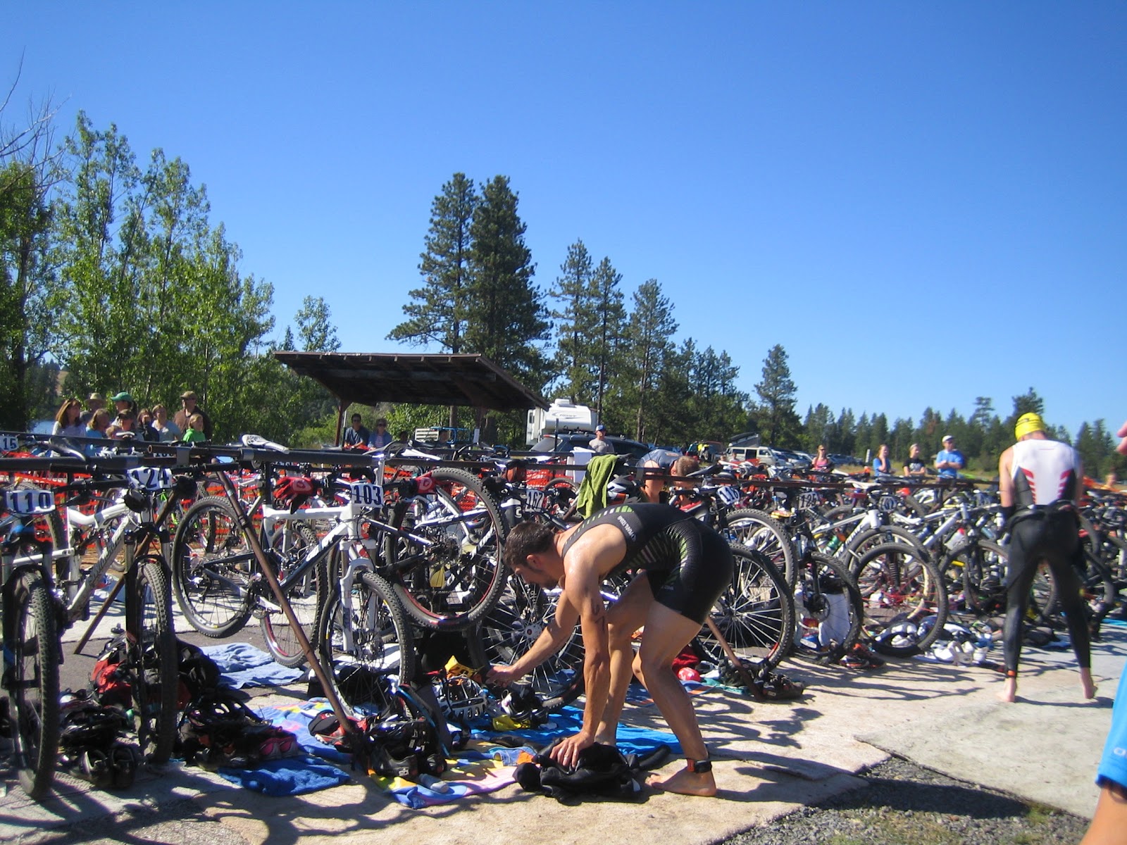 I woke up in a great mood and ready to race, I picked up my friend and training partner Kevin, and we headed to the ferry. On the way over I was running through the course for Kevin, being his first time on the Vashon course. We got to the race course in time and quickly set up transition, I chose to set up away from the bike out because it got extremely crowded and the back of transition was empty. We quickly rode a lap of the bike course and had just enough time to get to the pre race meeting.